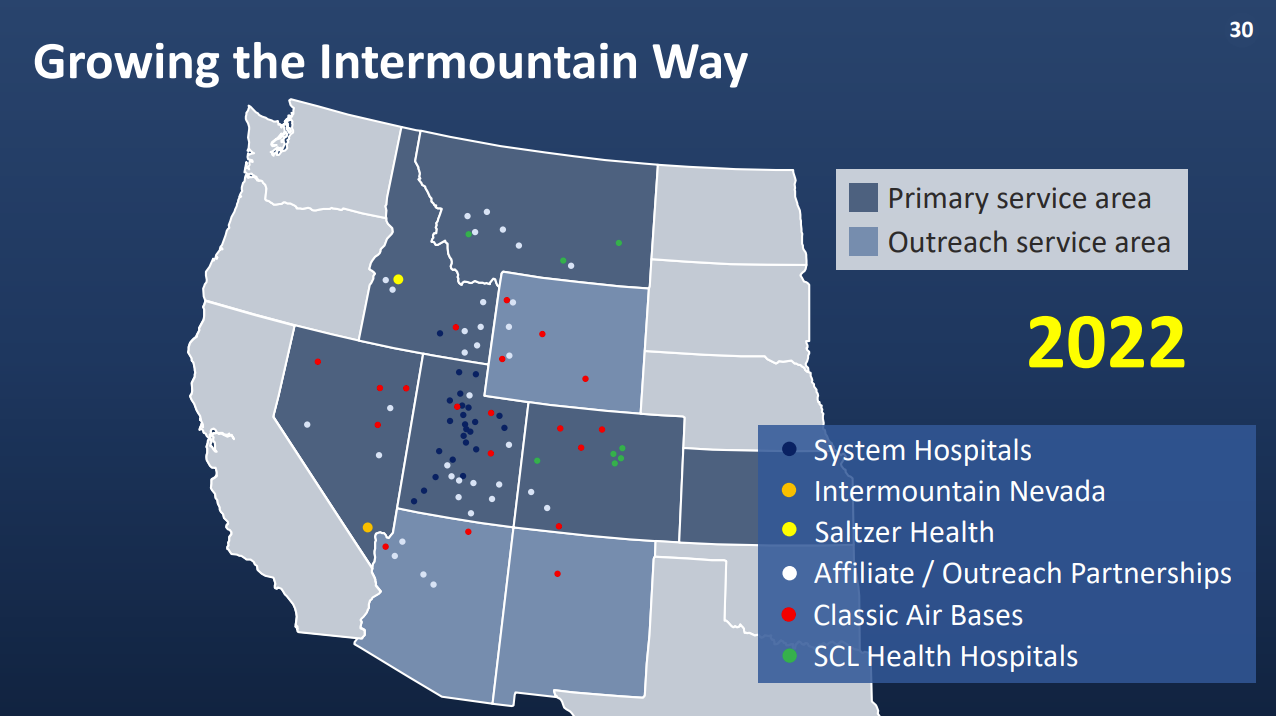 Intermountain is one of the savviest hospital operators around and has a huge 3,000+ physician base to bolster its value-based care initiatives. I love reading about the way they operate and how the health system is pushing the envelope forward when it comes to population health management. In fact, ~50% of IM's ~$11.0 billion in 2021 revenue came from premiums & capitation, putting its money and strategy where its mouth is. This merger comes two years after Intermountain benefited from buying the HealthCare Partners Nevada operation as a part of the planned divestitures from the larger Optum - DaVita $4.3 billion deal. Apart from physicians, legacy Intermountain's footprint included 23 hospitals in 7 states, and around 1 million members on its insurance plan. On the SCL side, the health system generated $3.0 billion in revenue across 10 hospitals and ancillary services in 3 states. Although the Biden Administration loves to crack down on antitrust particularly in healthcare, this health system merger managed to pass through scrutiny. Why? Insanely enough, the two health systems had minimal overlap in services & geographic footprint, creating a perfect storm for combining - there's no local market power / monopoly argument to be made here. SCL Health will not materially change its charitable missions as a result. As a historically Catholic nonprofit, this would have created some problems had SCL changed anything related to charity care provisions or type of care. The combined org isn't planning on laying any employees or or downsizing / combining clinic locations or other synergies you would expect from a for-profit entity (AKA, fire the excess personnel). When discussing merger motivations, Intermountain stressed the desire to advance value-based care and population health initiatives with the scale rather than JUST use that scale to negotiate favorable pricing. In a fee for service world, Intermountain would theoretically have much better pricing power with insurers post-merger. In summary, this is a pretty impressive combination throughout the Midwest / mountain region if you ask me. I'll be really excited to watch how Intermountain pioneers value-based care initiatives at scale within a health system strategy. |