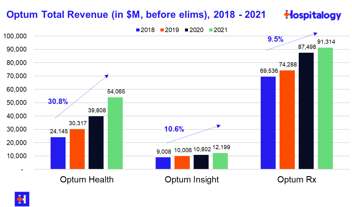 Based on the physician acquisitions and acquisitions in ambulatory assets like LHC Group and strategic alignment in SCA, you can see the strategy Optum is deploying in large markets. Optum is keenly focused on expanding its physician base and has said so on multiple earnings calls over the years. The segment is up to 60,000+ physicians in 2022. |