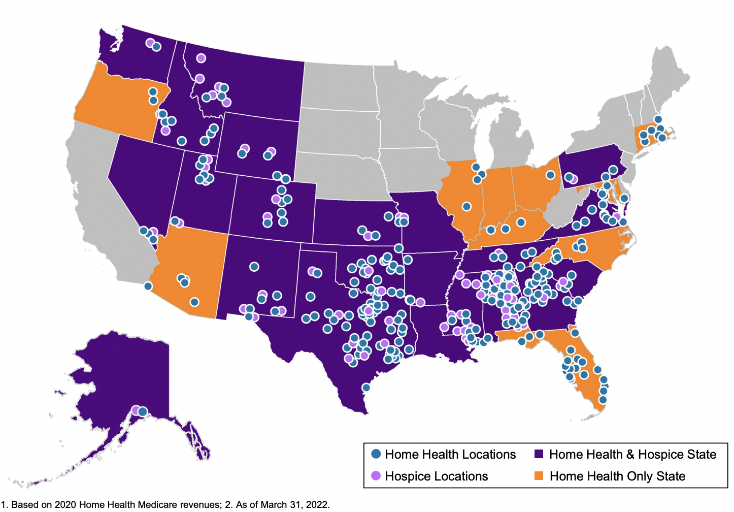 About Enhabit: The home health and hospice operator holds a nationwide footprint and generated just north of $1.1B in revenue as of CY 2021. Enhabit is solidly profitable as well, operating at around a 17% EBITDA margin, or $184M on 200,000 admissions. As part of the spin-off announcement, Encompass issued guidance for Enhabit for full-year 2022. Financials are expected to decrease slightly, with a revenue midpoint of $1.1B and EBITDA midpoint of $175M. Some of this is likely related to corporate overhead allocations while the rest is attributable to the headwinds I'll mention below. Its hospice segment comprises about 19% of total revenue with an ADC of around 3,800. Enhabit is the 4th largest home health player and the 12th largest hospice player sitting alongside the likes of other national operators like Amedisys, LHC Group, AccentCare, and Kindred. The operator boasts 351 HH&H locations across 34 states with 10k employees. Madden's Musing: Although home health - and post acute in general - is poised for growth given the aging Medicare population and continued shift to the home, Enhabit and other home health orgs are facing major short-term headwinds, including staffing woes and reimbursement hits from CMS given that 80% of its book of business is Medicare. Here's an interesting tidbit on Enhabit's home health → hospice pipeline: "Many home health patients will ultimately require hospice services. By offering hospice services in many markets where we operate our home health business, we minimize disruption and gaps in care to patients who transition to hospice. We believe this co-location strategy between our home health and hospice businesses creates a growth opportunity for our hospice business, especially in geographies where we operate home health but not hospice." Enhabit 8-K filing One of the major reasons why Encompass decided to spin Enhabit off seemed to be related to Encompass' desire to fully focus on the IRF biz while Enhabit could do the same for home health. Enhabit still has a major opportunity ahead of it both from a consolidation standpoint (home health is STILL highly fragmented along with a growing need for hospice) and a value-based care standpoint (payors are incentivizing shifts to value-based models). |