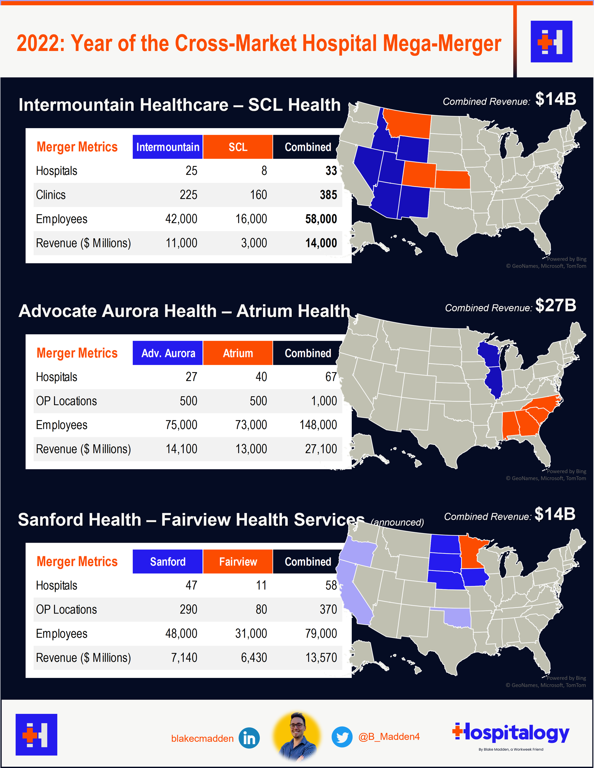 Bottom line: 2022 was a year of suffering for hospitals and it doesn't surprise me one bit to see large health systems get creative with deals. |