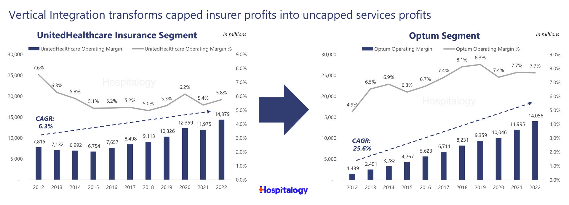 Payors are chasing UnitedHealth Group and the Optum strategy. The shift toward vertical integration means that insurers are moving profits from regulated, capped insurance segments downstream into higher-margin, unregulated, uncapped services entities.