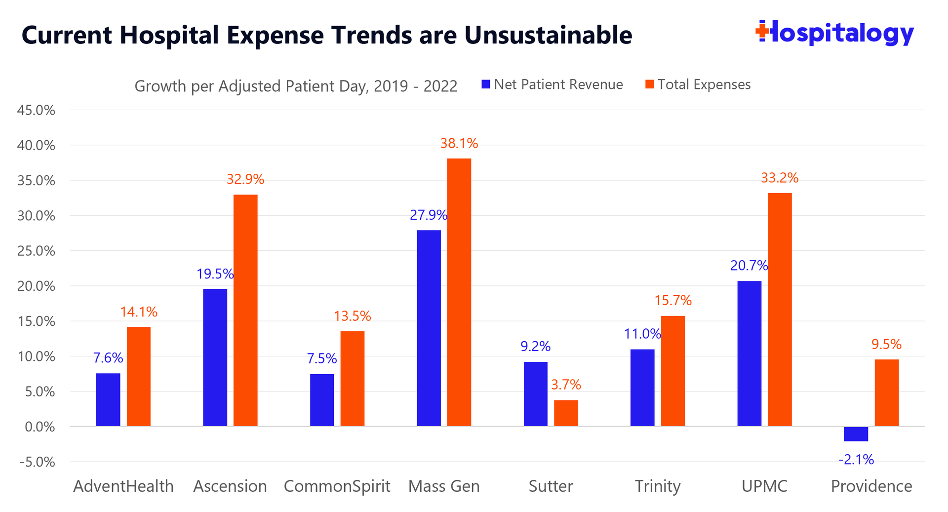 And that's the main problem at health systems right now. It's more than just the investment losses. That argument detracts from the more pressing issue affecting hospitals across the country. These health systems, in an ironically similar fashion to startups, are trying to find ways to cut costs, retain clinicians, and boost revenues in any way they can.