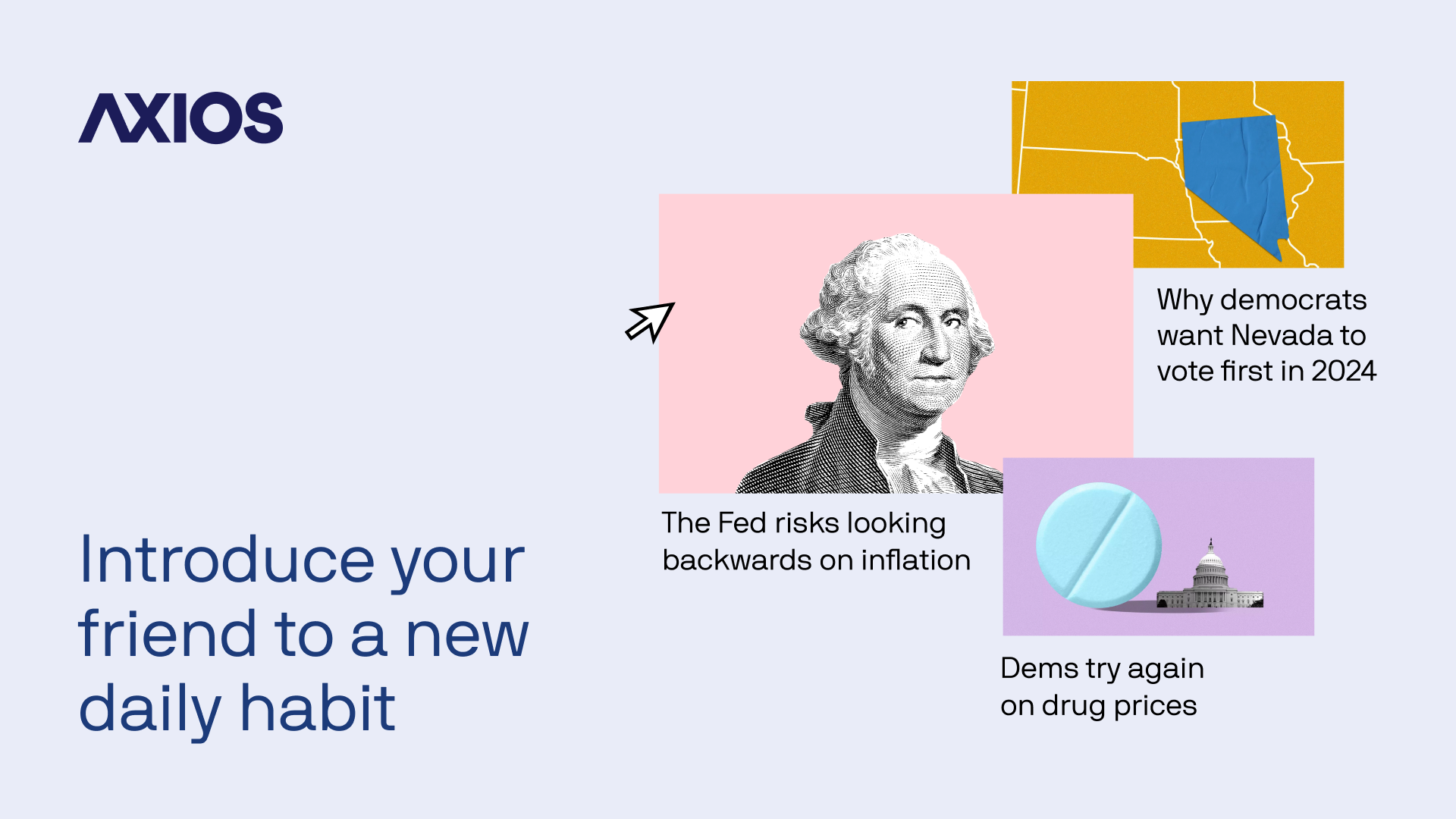 | | | | | | | A message from Axios | | Help a friend get smarter, faster | | | | | | | Have you gotten smarter, faster reading Axios Space? Share the newsletter you know and love and win free Axios swag! It just may be your friend or family member's new favorite daily habit. They just don't know it, yet. Tell a friend today. | | | | 🌙 Big thanks to Alison Snyder for editing, Sheryl Miller for copy editing, Tory Lysik and Natalie Peeples for the graphic and the illustration respectively. If this newsletter was forwarded to you, subscribe. | | | Are you a fan of this email format? Your essential communications — to staff, clients and other stakeholders — can have the same style. Axios HQ, a powerful platform, will help you do it. | | | | | | Axios thanks our partners for supporting our newsletters. Sponsorship has no influence on editorial content. Axios, 3100 Clarendon Blvd, Arlington VA 22201 | | | You received this email because you signed up for newsletters from Axios. To stop receiving this newsletter, unsubscribe or manage your email preferences. | | | Was this email forwarded to you? Sign up now to get Axios in your inbox. | | | | Follow Axios on social media: | | | | | |