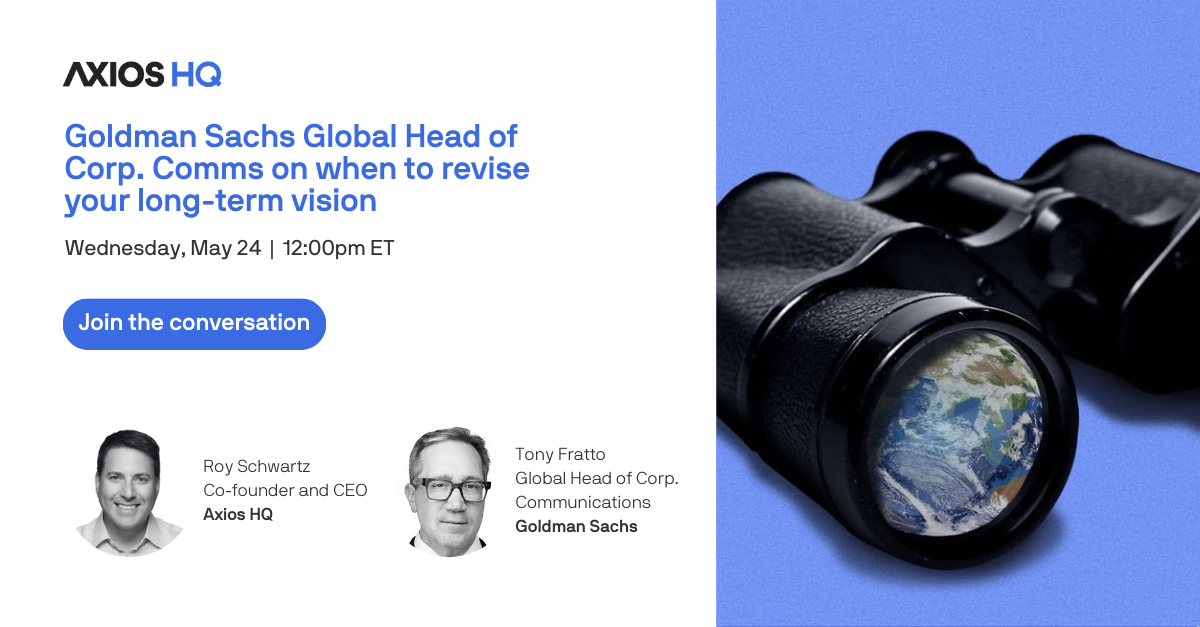 Read the rest. | | | | | | | A message from Axios | | Goldman Sachs' Tony Fratto on revising your comms strategy | | | | | | | It's time for leaders to take a hard look at how they're operating and find new, innovative, and strategic ways to lead their teams to success. - Join us May 24 when Fratto and Axios Co-founder Roy Schwartz dig in on how to get it done — and communicate it well.