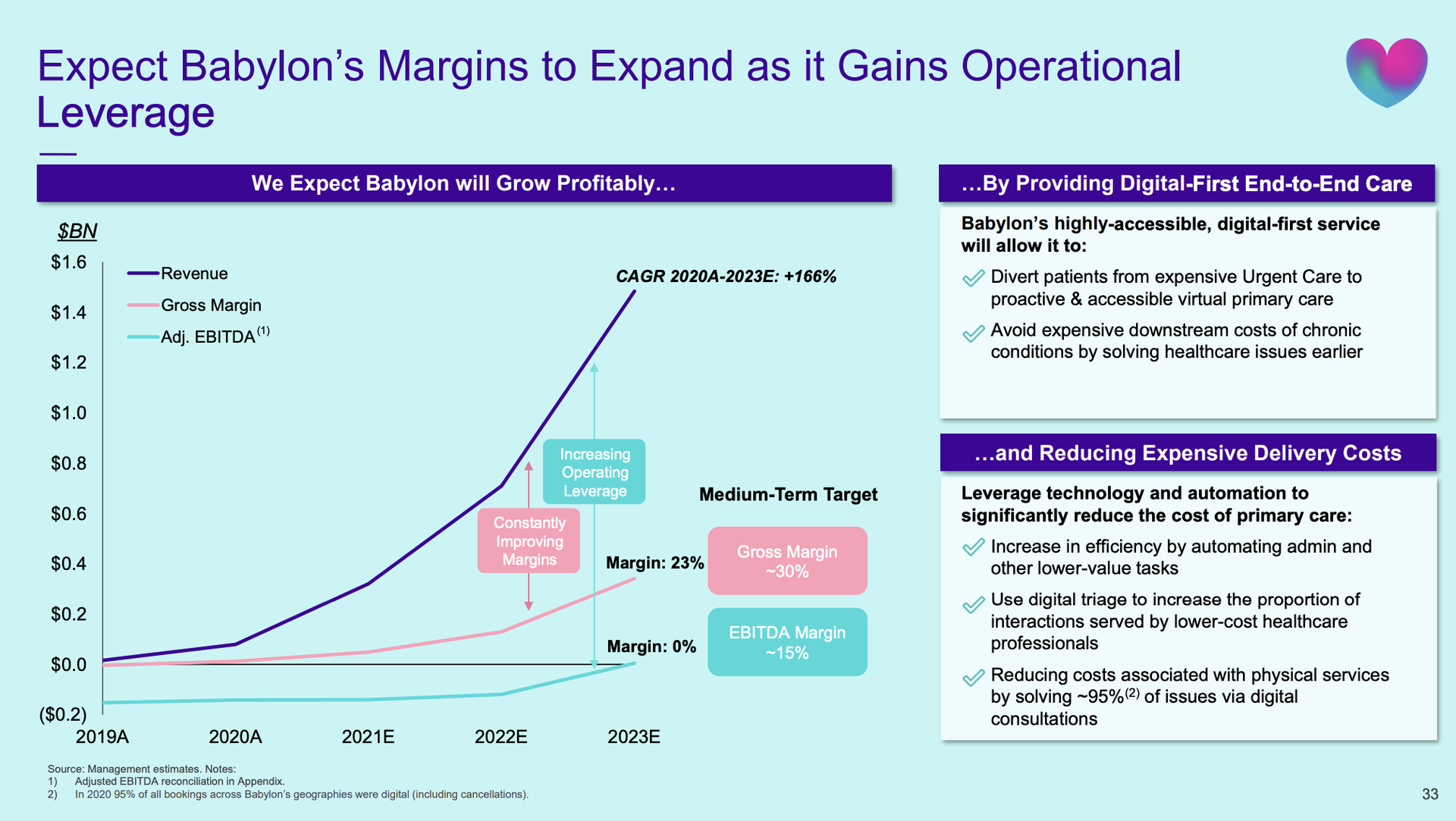 Through that self-declared differentiated, virtual first care model, Babylon expected to hit breakeven adjusted EBITDA in 2023. |