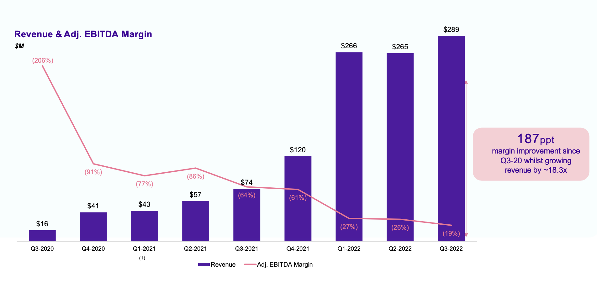 The company is the perfect epitome of the speculative exuberance, SPAC bubble, and irrational valuations that existed a short 18 months ago. Shout out to one of the worst public runs for a digital health company, ever, and special thanks to Babylon for providing us with one of the greatest chart crimes of all-time in healthcare. Note to every digital health in existence, from a former consultant: Please don't depict adjusted EBITDA margin like this axis does. Ever: |