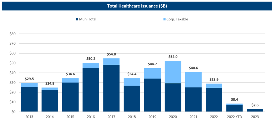 Meanwhile, S&P has maintained a credit rating of 'AA-' for both Kaiser and Geisinger. But by joining forces with Risant, Geisinger probably prevents any future damage from a borrowing perspective, keeping it off any agency negative credit watch. Since Kaiser is throwing its might behind Risant, I have to think that Risant would hold a similar credit rating to broader Kaiser, which sits at AA- as of May 12 - potentially allowing for systems to borrow against the Risant-Kaiser rating rather than their own. If the above holds true (and it may not - I'm speculating and am not a nonprofit bond expert), Risant's high grade credit rating would present an enticing opportunity for small to mid-sized health systems to join Risant and lower their borrowing costs during a time of extremely low nonprofit health system debt issuance participation. (image credit - Kaufman Hall; h/t to Gist Healthcare) |