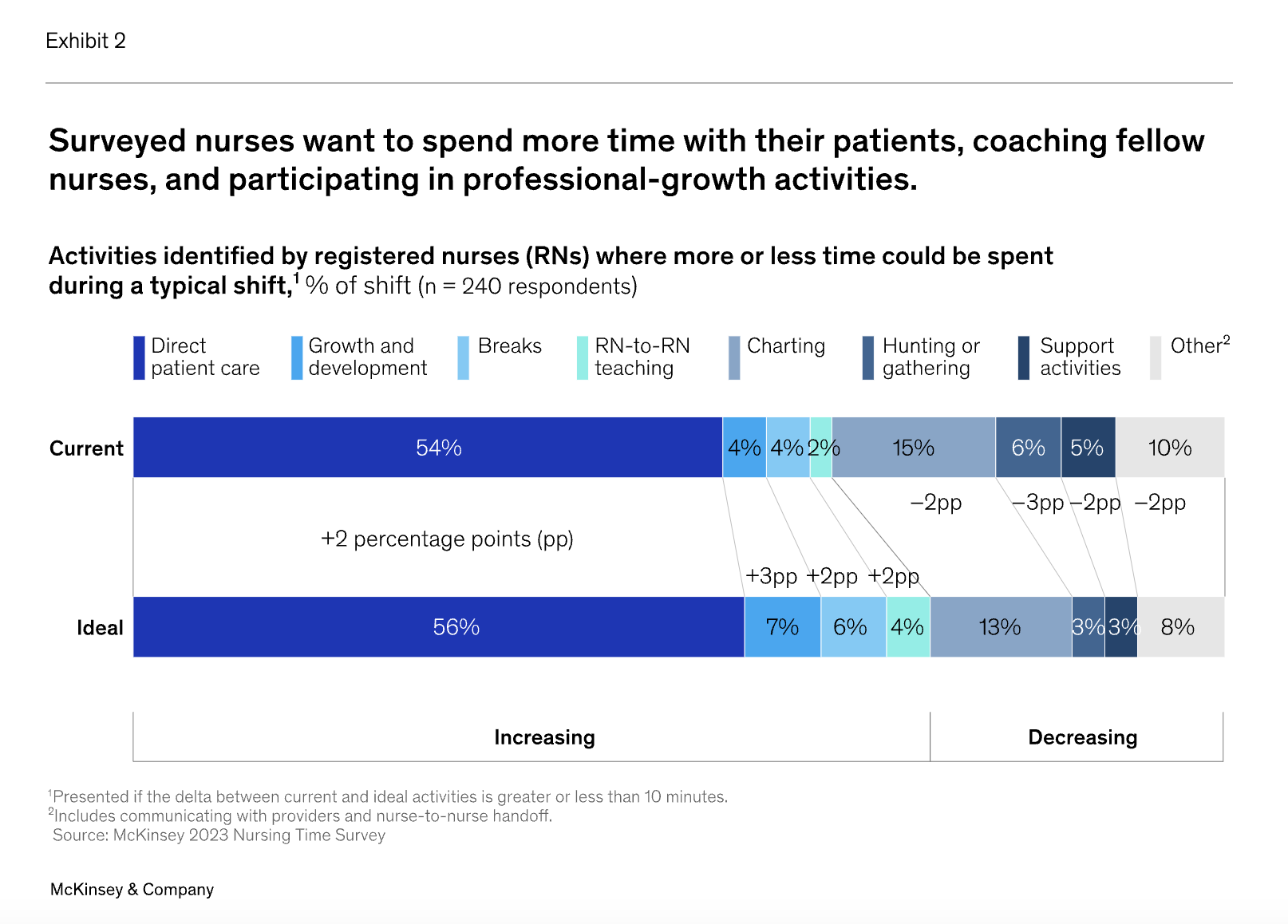 Partnerships and Strategy Updates     Evernorth has entered a strategic partnership with CarepathRx, aiming to leverage the latter's health system footprint to provide integrated specialty pharmacy solutions. As part of the partnership, Evernorth is making a significant minority investment into CarepathRx. (Link)     Minnesota is expected to pass a public option health insurance plan, following in the likes of Colorado and Washington state. Interestingly, it seems as if both payors and providers dislike the bill, with insurers stating that residents would switch off more lucrative private commercial plans while service providers would face a hit to revenue (side note - assuming they're forced to stay in network with the public option). Definitely a dynamic to watch. (Link)       UPMC is expanding its in-house travel program by adding a regional option, aiming to meet its staffing needs more flexibly. As of June 1, UPMC has hired more than 700 staff into the in-house travel staffing agency, with 60 percent of those workers being external hires. (Link)     McKinsey continued its series on the nursing workforce with interesting insights for healthcare operators, including a survey of nurses that identifies gaps between what nurses perceive as ideal use of time versus what they actually spend their time on, and where tech can fill in the gaps to help with burnout and admin tasks. (Link)    |