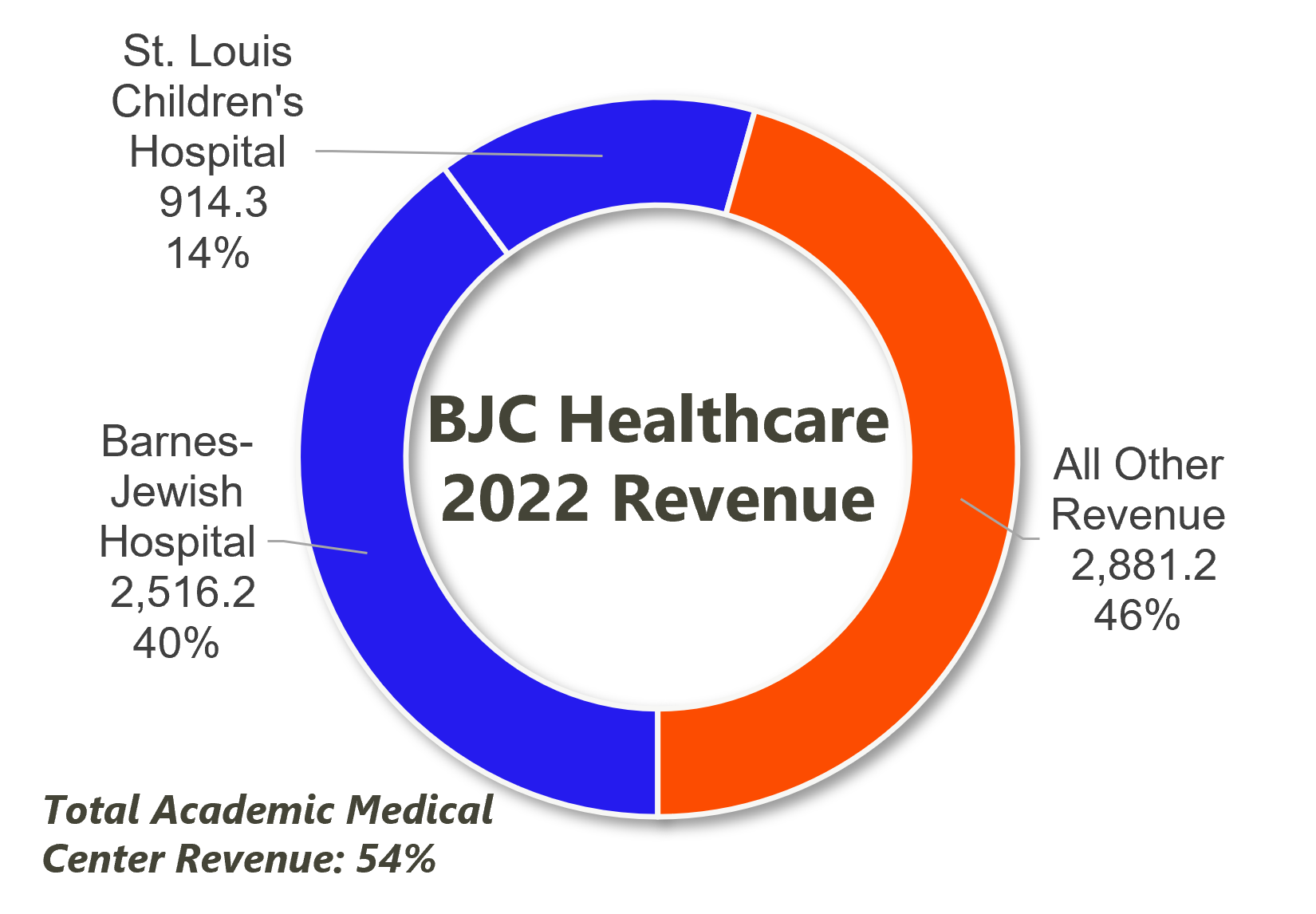 Anyway, numbers aside (I'll issue a correction if I figure it out), I digress. The bigger story here is yet another 'cross market' merger between two non-profit health systems in which both systems maintain their own headquarters and operate independently, yet try to realize some expense/capability-based synergy. The merger follows in the footsteps of Advocate-Atrium, Intermountain-SCL, UnityPoint-Presbyterian, and Kaiser-Geisinger. BJC and Saint Luke's makes a bit more sense than those, though. Both of these health systems have been a part of the BJC Collaborative - a multi-system alliance - since 2012. And the merger paints an even clearer if we take a peek at BJC's impressive facility base and academic medical center footprint. BJC holds a 40+% market share in its core market and generates 54% of its revenue from its formidable academic medical center footprint: |