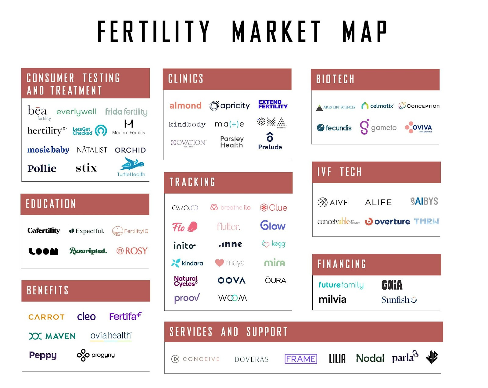 - Chrissy Farr and Leslie Schrock wrote an excellent essay on the state of the fertility market, including the incredible market map below. (Link)