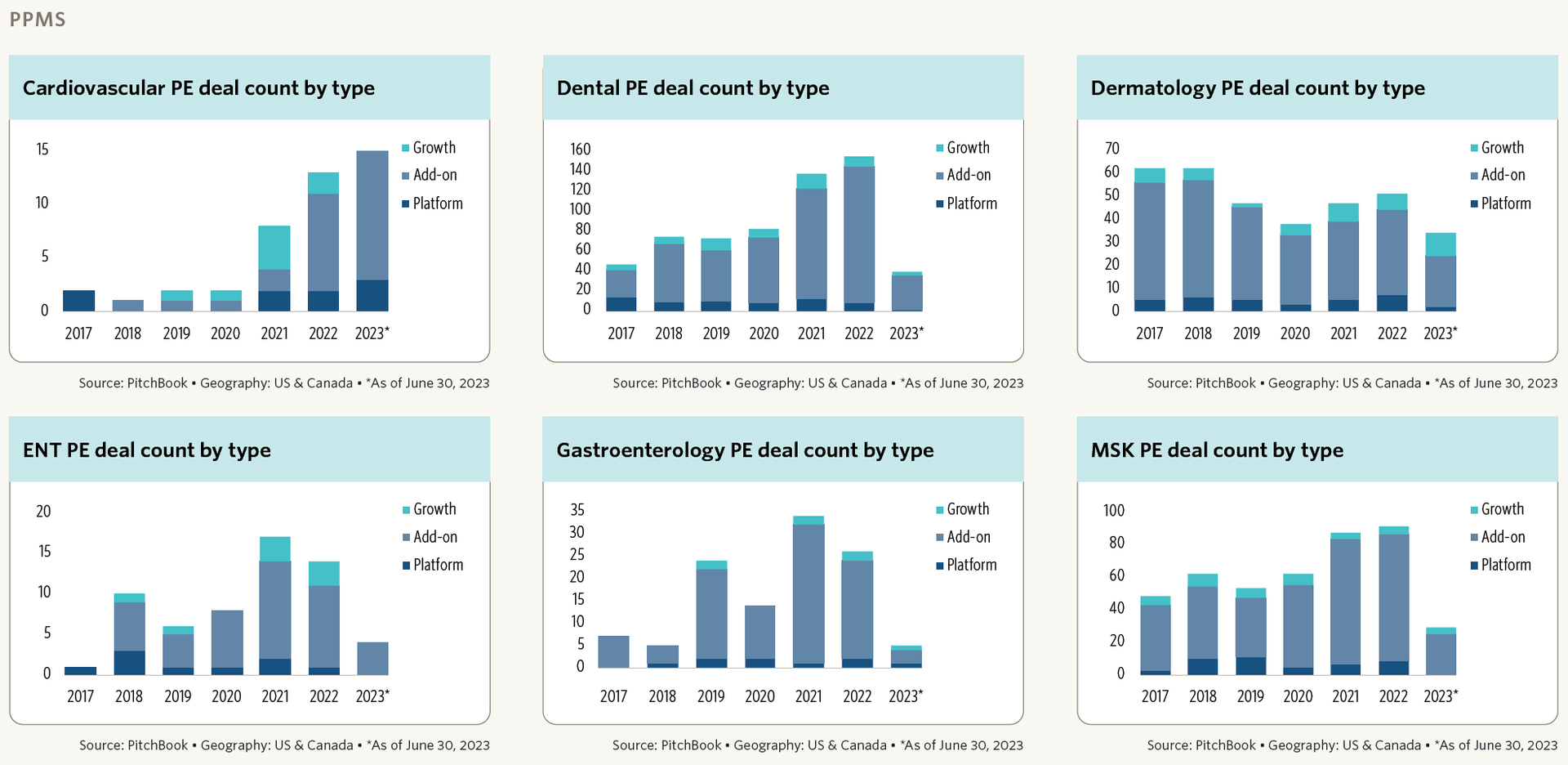 - At the same time, several PE-backed practice management companies are struggling, and M&A is shrinking in 2023.
