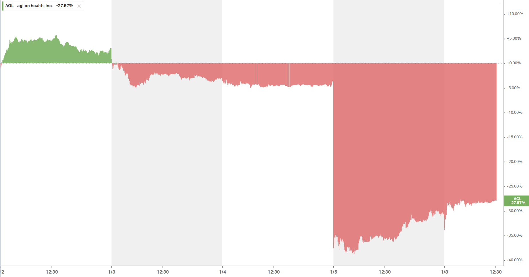 agilon kicked off the year in the worst possible way for the Medicare-focused enablement firm, announcing a huge cut to its expected financial results. Meanwhile, it also announced the retiring of its CFO on the same day. Goes without saying, but announcing a CFO transition the same day your company slashes your projected earnings is a recipe for disaster, as noted by the utter destruction of shareholder value, down 30% on the day: |