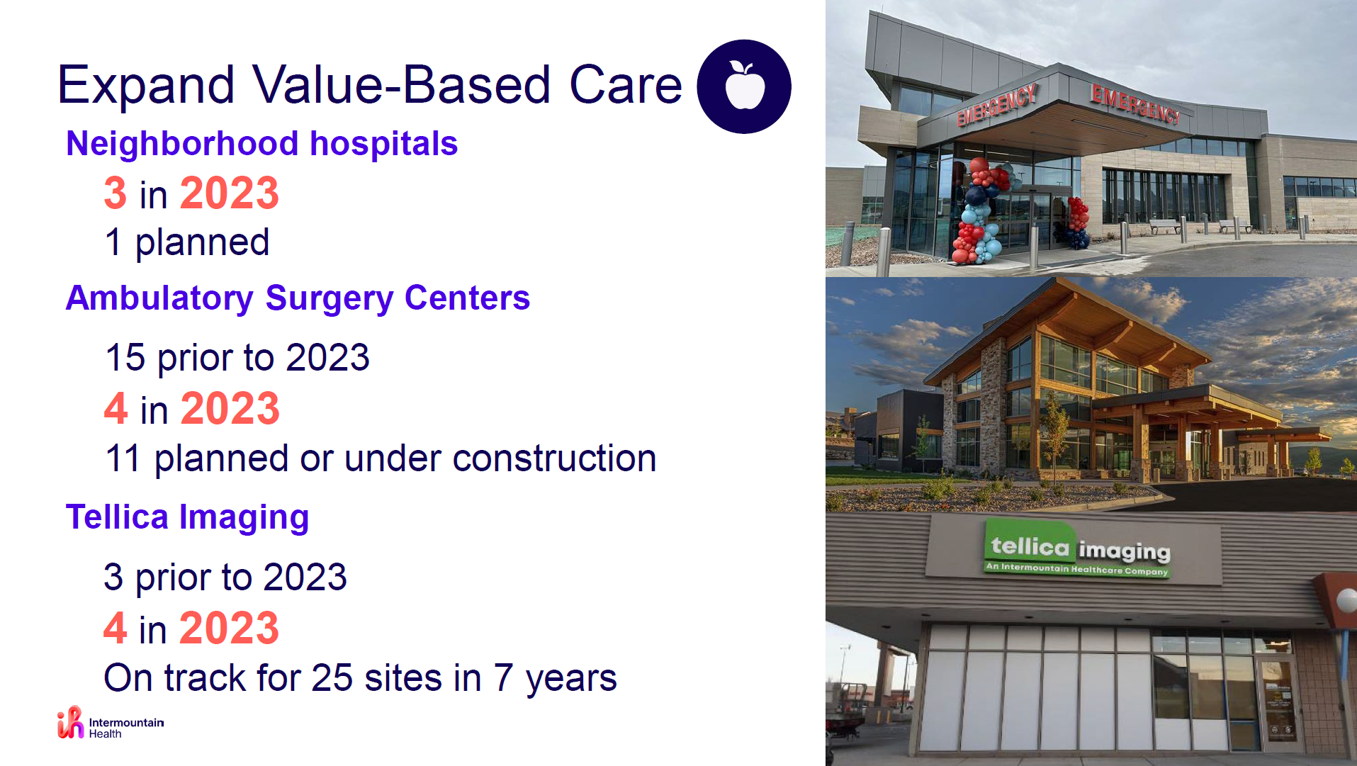 Intermountain had plenty to say during its presentation but is also developing a de-novo strategy on community hospital buildouts, ASC placement, and diagnostic imaging centers: |