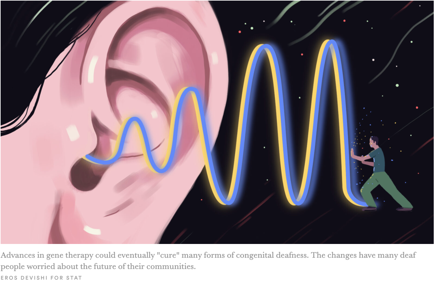 Scientists are celebrating gene therapy advances that could permanently reverse deafness. But for some deaf people, they trigger an existential dread: If deafness can be cured, what happens to their communities and cultural identity? STAT's Timmy Broderick examines those and other questions about individual choice and unintended consequences in their latest piece.