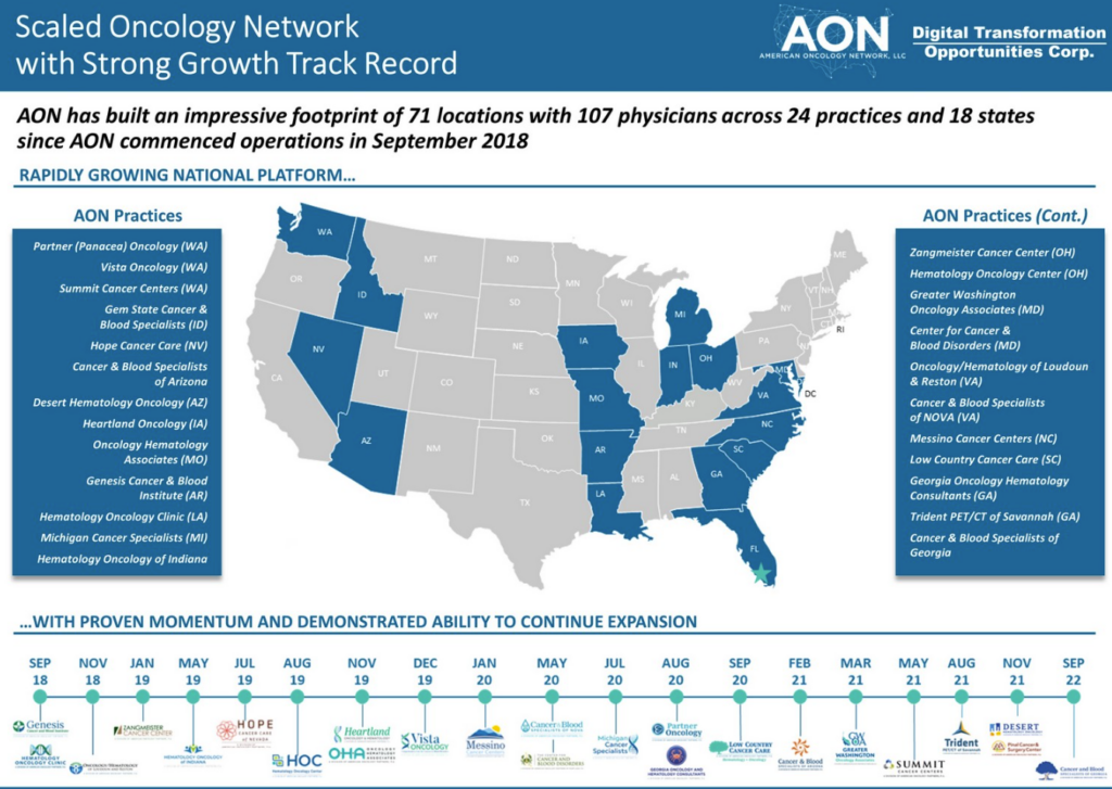 Other smaller or non-vertical players include The Oncology Institute, GenesisCare, Oncology Care Partners (backed by Welsh Carson Anderson & Stowe), City of Hope, the aforementioned American Oncology Network (which once was expected to go public via SPAC) |