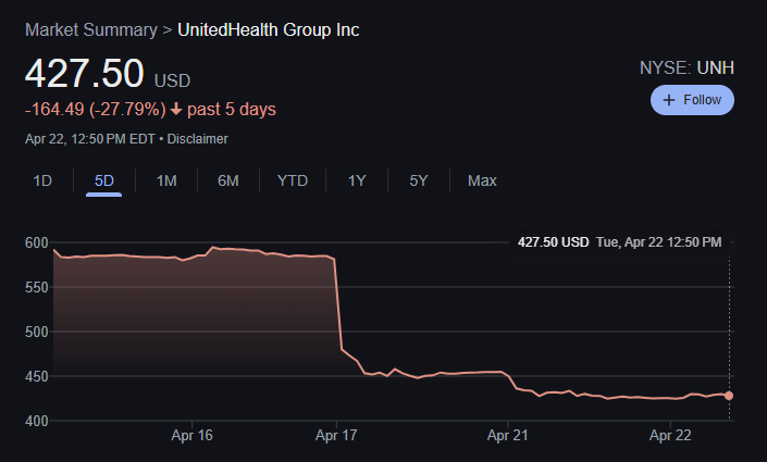Besides regulatory breakup or other policy-driven risks, this current dynamic is probably the biggest bear case for UnitedHealth Group as seen by the slide in stock price post-Q1 earnings. Over the past few years UHG has been preaching "value based care. Capitation." This quarter opposed this thesis, as seen by Optum's 10% revenue guidance cut and a marked shift back to fee for service. Whether this continues long-term remains to be seen, but UHG management didn't seem to think so.