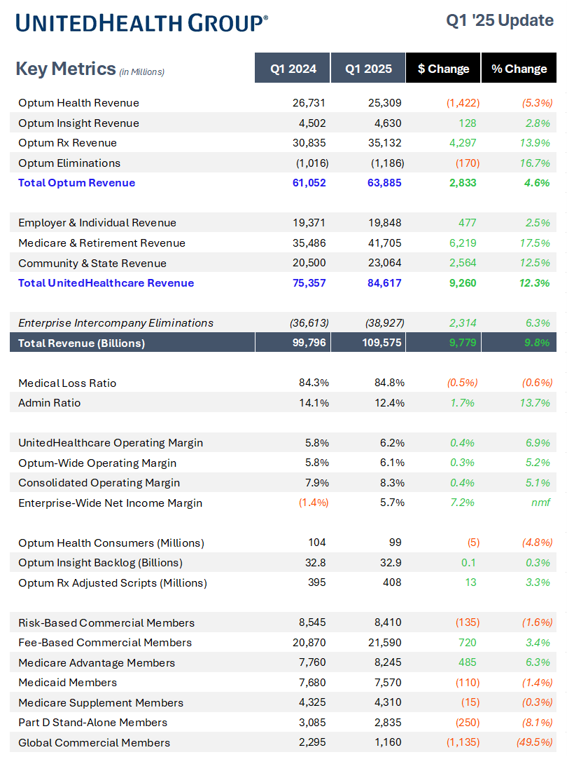 - In UnitedHealthcare's Medicare Advantage business, we had planned for 2025 care activity to increase at a rate consistent with the utilization trend we saw in 2024. Instead, though, first quarter 2025 indications suggest care activity increased at twice that rate.