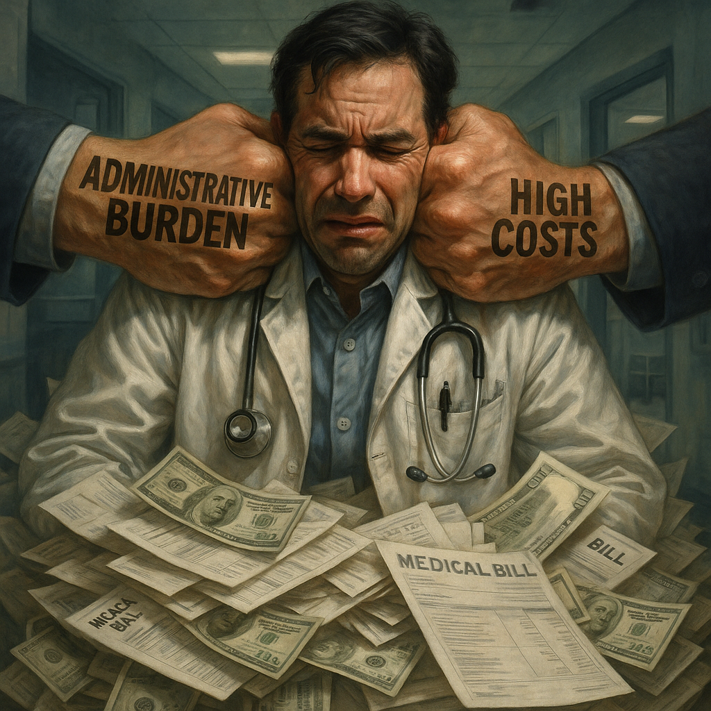 (how do you like the AI-generated depiction of physician corporatization? Sorry, couldn't help myself) The AMA updated its report on physician employment dynamics across private practice, hospital-based, and private equity employment, and the consolidation trend continues. There are fewer private practice physicians today than there were a decade-plus ago, and this trend has only accelerated given recent inflationary pressures. |