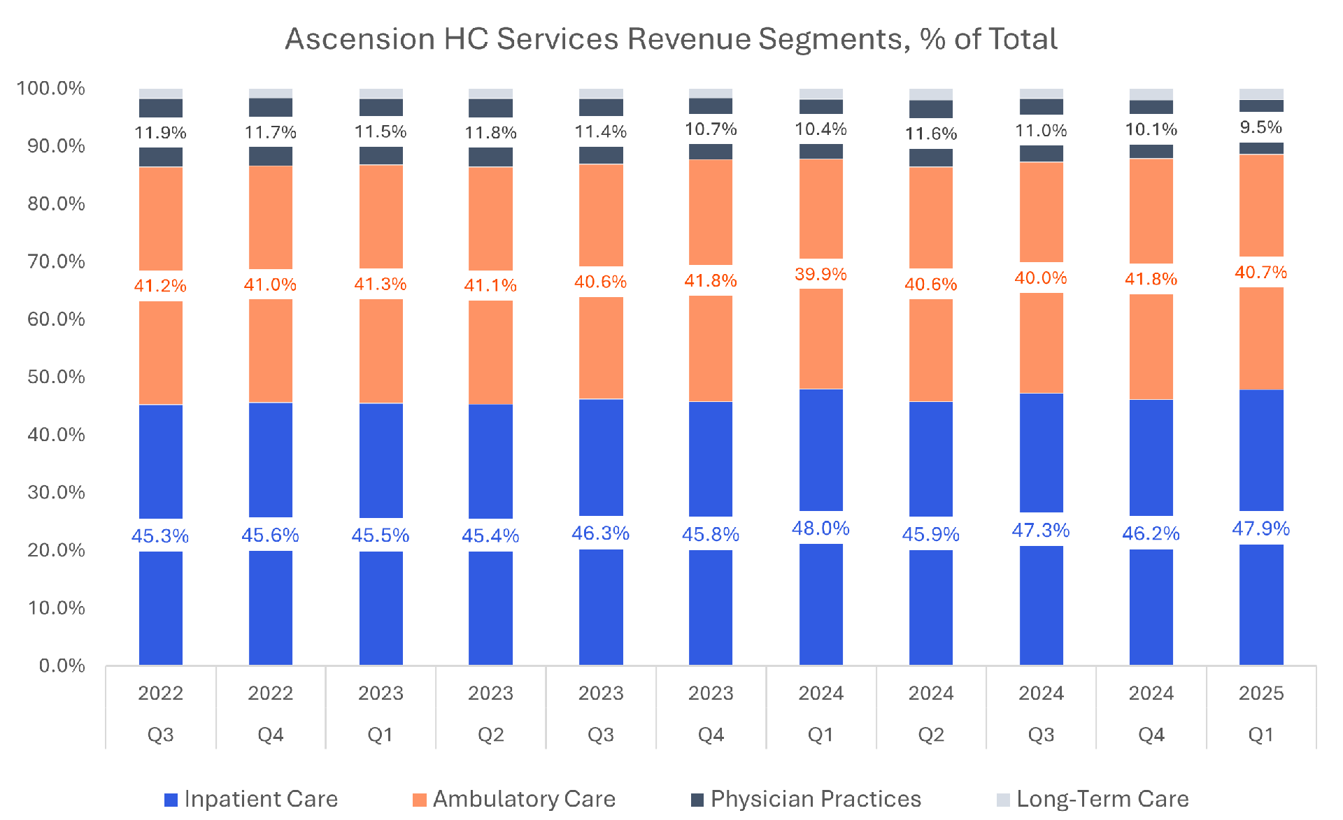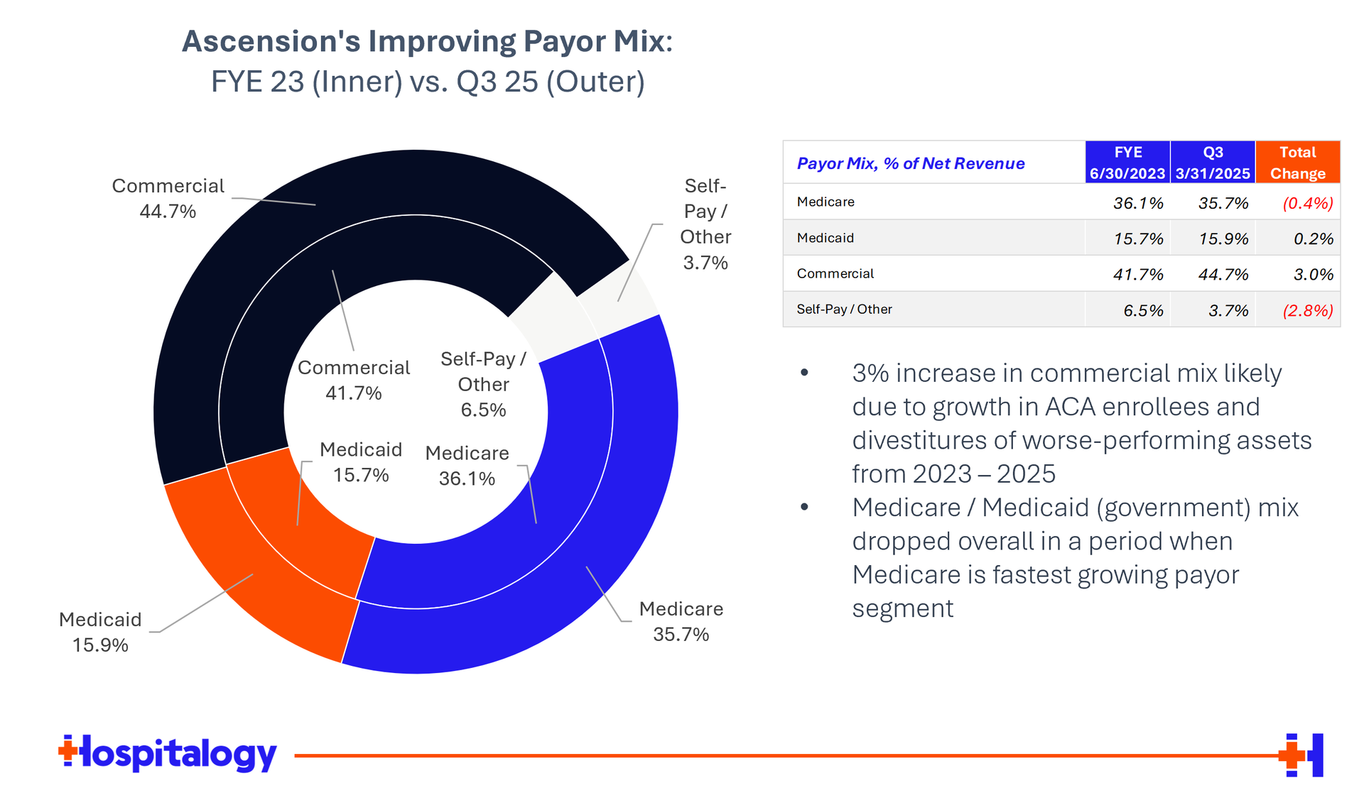 Similar to other nationally scaled health systems, Ascension saw an uptick in commercial (employer sponsored) mix from 2023 to 2025 as we've seen in most hospitals given the favorable dynamic with high ACA enrollment, which falls under commercial. I would also make a reasonably educated guess that divestitures of poorly performing assets also compounded this effect by moving off of government heavy mixes. That obviously brings into question whether those divested hospitals have found a sustainable spot in their respective communities.