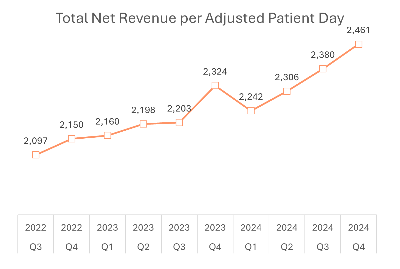Ascension also noted a slight uptick in case acuity, and a 1.4% increase in net revenue per adjusted discharge on a same-facility basis as payor negotiations have yielded larger increases. |