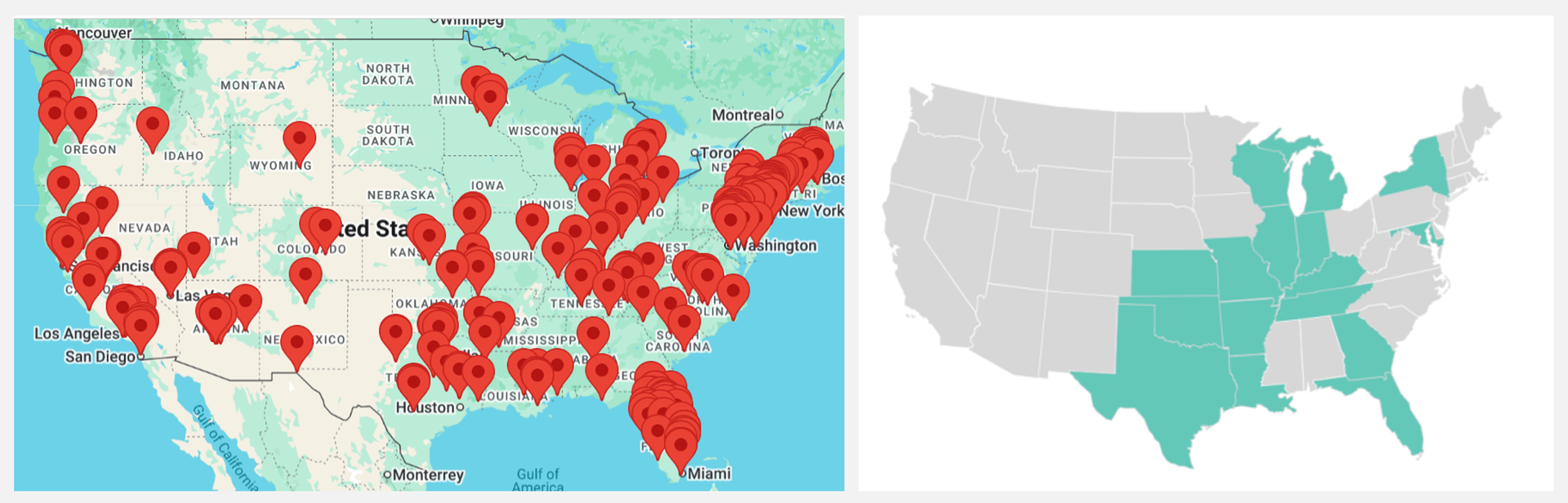 Look at where Ascension is making strategic ACQUISITIONS - purchase prices aside (if that information ever comes to light): a hospital in Austin, Texas (where Ascension already has a decent footprint and a strong demographic profile) and outpatient ambulatory care - 250 ASCs across 24 states as Ascension experiences outmigration of volumes and wants to reorient its growth strategy while diversifying its book. (Ascension footprint on the right; AmSurg on the left) |