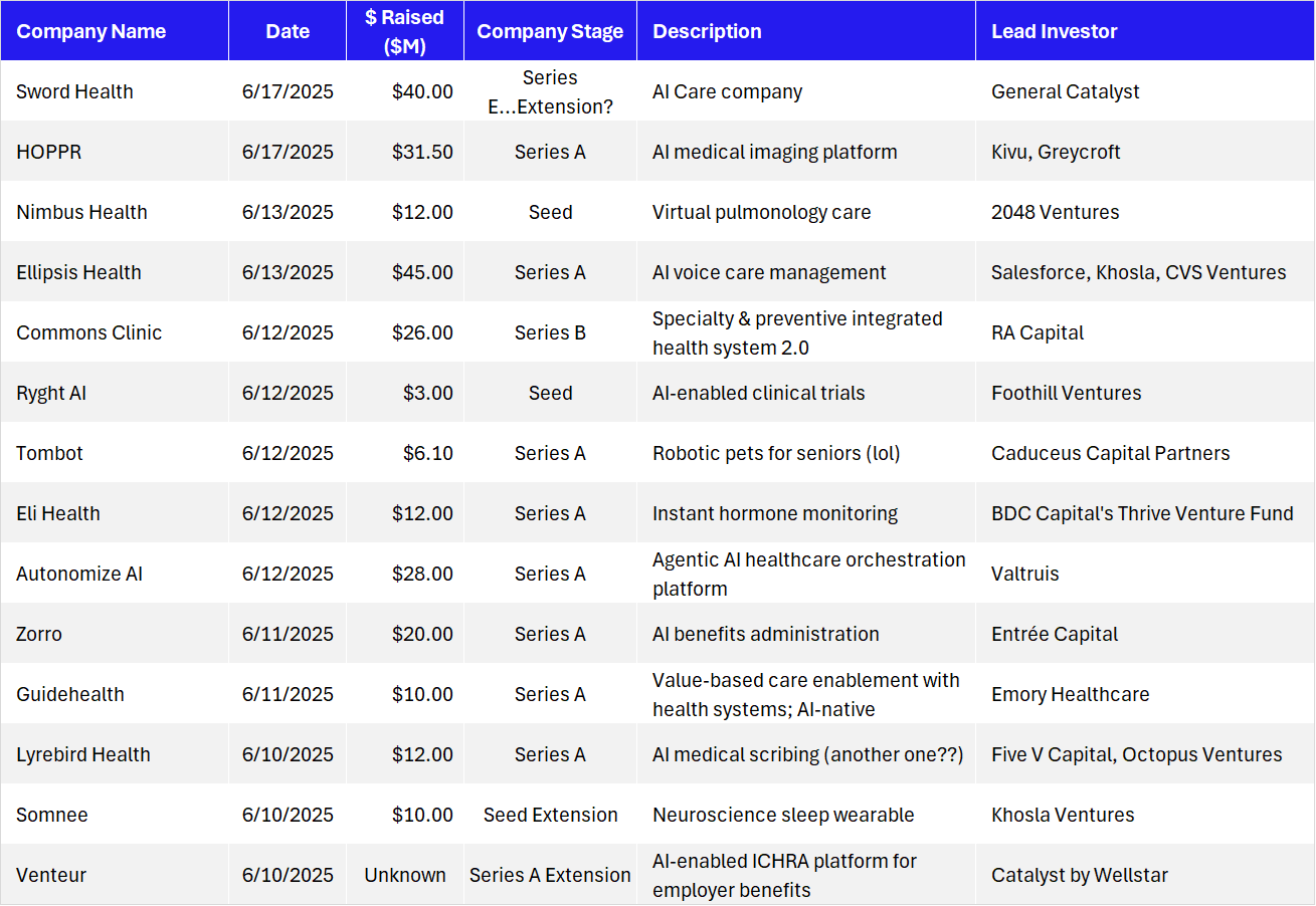 Health Tech Funding Roundup (Non-Exhaustive), Week of 6/17/2025 |