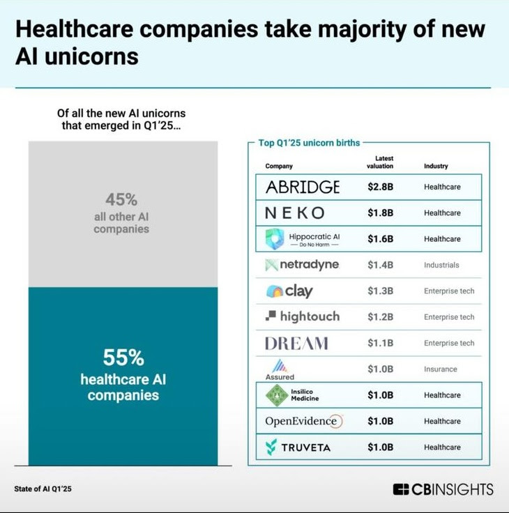 In fact, according to CB Insights, a majority of newly minted AI unicorns come from healthcare. The TAM!! |