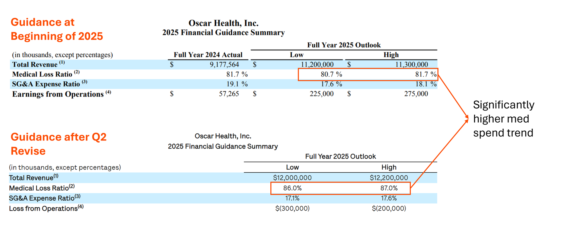 Less than a year after hitting profitability and promising future profitable growth, and on the heels of material ACA weakness - along with potential enrollment fraud in the form of duplicative membership (as noted by Centene and independent analysts), Oscar revised its Q2 and full year 2025 guidance. The rising insurtech isn't immune to pressures facing the traditional health insurance model and is facing tumultuous winds in 2025 with its pirate ship on the open sea. Oscar now expects a ~$230M operating loss for Q2 and 2025 loss of ($200M) - $300M). Why the face-plant? Higher individual-market risk scores, an 86 - 87% MLR, and the same red-hot utilization that's singeing bigger carriers. Price hikes are coming for 2026 (the largest in 5 years!), but the reset shows just how fragile ACA-only models remain when risk adjustment or premium subsidies wobble. - The analysis of the 2Q Risk Adjustment Reports, covering nearly 100% of Oscar's geographic footprint, shows that overall ACA Marketplace risk scores, a measure of the average morbidity of the market, have increased by more than the Company's prior estimates. Based on the reports, the Company now expects a medical loss ratio of 86.0% to 87.0% for full year 2025. Utilization by Oscar's members remained elevated in the second quarter of 2025; however, cost trends moderated as compared to the first quarter of 2025…The Company expects to resubmit rate filings for 2026 in states covering approximately 98% of current membership to reflect the higher market risk scores in the ACA Marketplace.