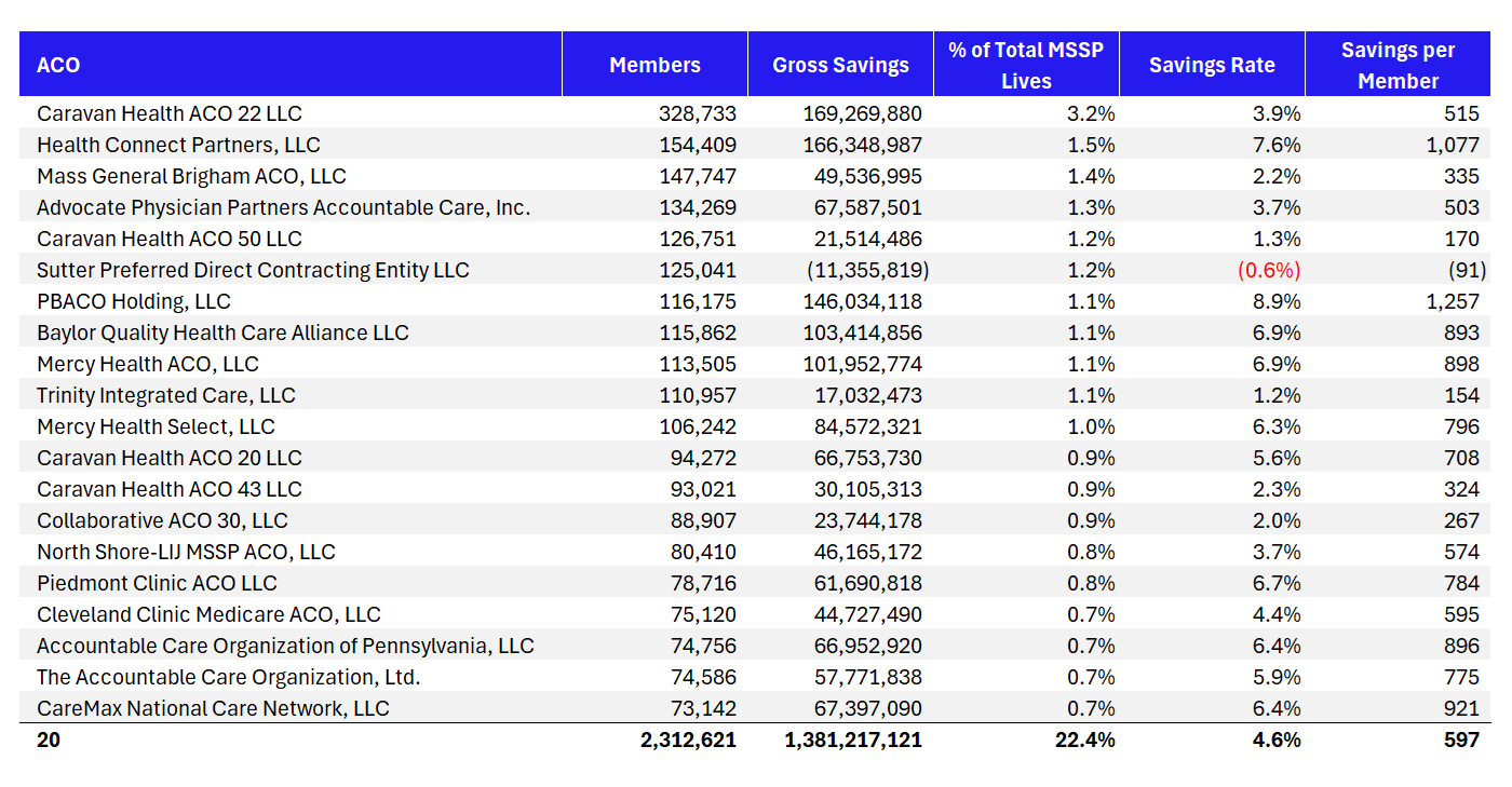 Resources: Company specific MSSP announcements - Privia Health MSSP announcement: Privia Health ACOs Delivered $233+ Million in Total Savings in the 2024 Performance Year of Medicare Shared Savings Program, a 32% Year-over-Year Increase