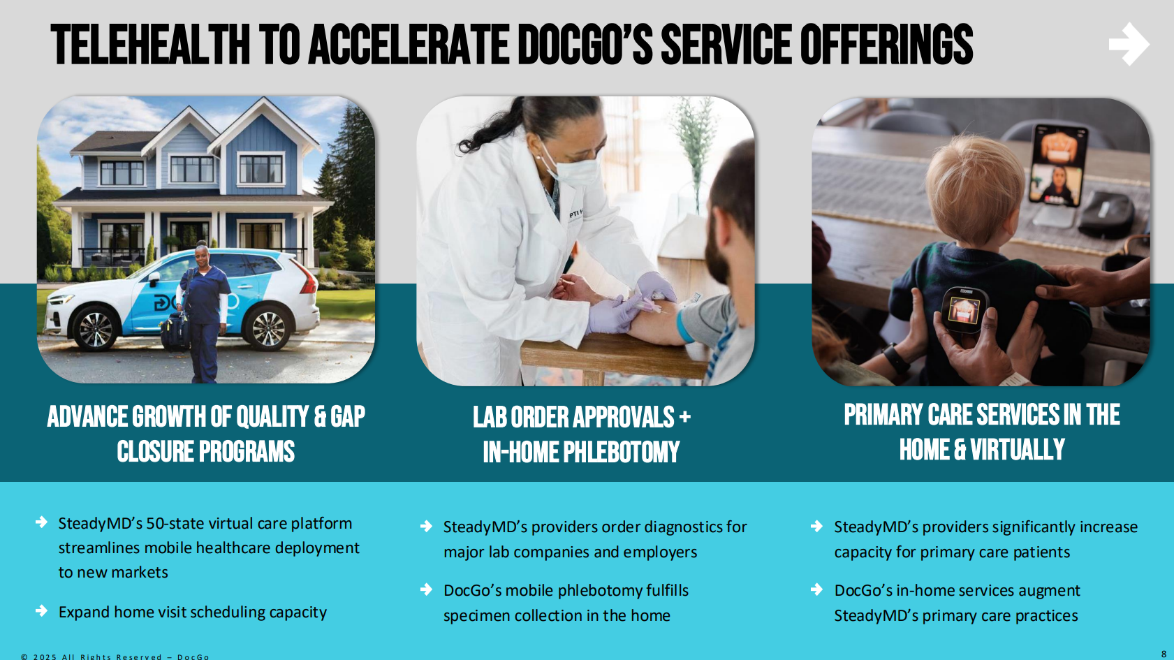 Samaritan Health Services and MultiCare announced their intent to merge, which together would create an 18 hospital, 30,000+ employee health system in the Pacific Northwest. Hospital for Special Surgery (often referred to as a top orthopedic hospital in the country) is teaming up with General Atlantic to launch a nationwide platform of ambulatory surgery centers focused on orthopedic and spine care. They're kicking things off by acquiring Legent Health, an experienced ASC operator, which gives them instant scale to bring best practices across a Texas and Florida footprint of ASCs. HSS' idea is to bring high-quality orthopedic care closer to patients in lower-cost ASC settings, while giving surgeons equity stakes, clinical freedom, and access to HSS's best-in-class protocols. Seems like a great move in a lucrative space. United Digestive made a splash (no, not a toilet splash…shudders) acquisition in Florida by acquiring Gastro MD and GI of Greater Orlando, adding 32 GI docs and associated clinicians to its MSO. Duly Health and Care announced a couple of minor deals in the past week, acquiring primary care practice Woodridge Clinic then buying a minority interest in Valley ASC in partnership with Surgery Partners. DocGo is acquiring telehealth platform SteadyMD. Shout out to Guy Friedman, what a beast. DocGo is more than just non-emergent medical transportation - the firm also conducts home health visits and remote patient monitoring, so SteadyMD will tap into those segments. 1x multiple on 2025E revenue. SteadyMD's last financing event was a $25M Series B back in 2021. |