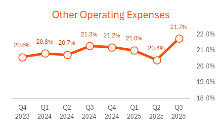 - Labor normalization is holding. Same‑facility contract labor was essentially flat year over year and was 4.2% of total labor cost. HCA is now squeezing professional fees and supplies while using scale tools like HealthTrust and digital workstreams to protect margin. One quick note on contract labor - it ticked up just barely - by 0.2% of salaries & wages - in Q3 sequentially from Q2. It's pretty minor, but I do think it's notable from the perspective that it probably signals the bottoming out of the labor market.