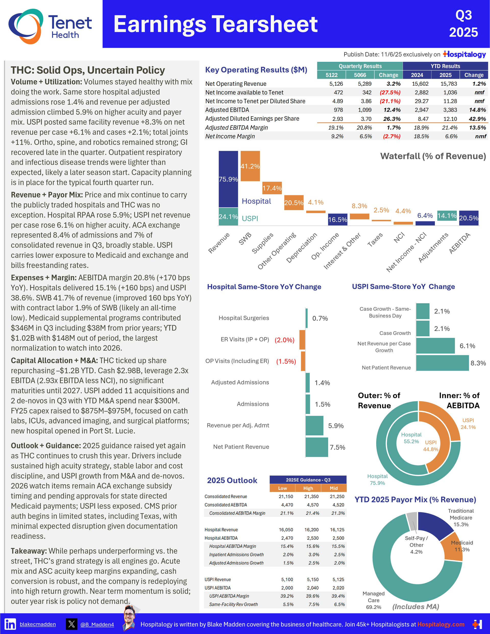 - Outpatient access is the growth battleground: All operators are aggressively investing in freestanding EDs, ASCs, and ambulatory platforms, with Tenet's USPI segment demonstrating the power of this model with 38.6% EBITDA margins and 12% growth.