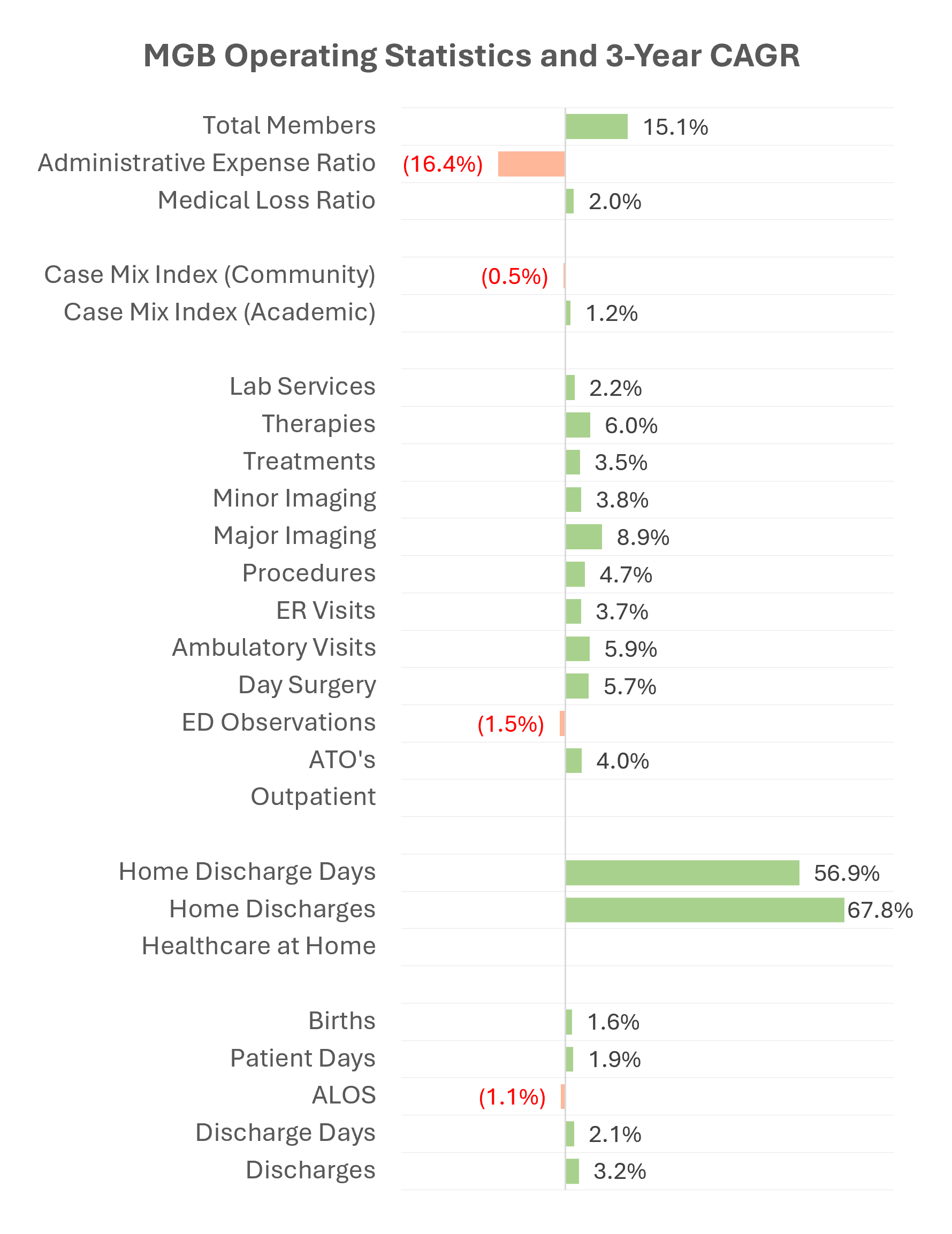 - MGB operates one of the largest hospital-at-home programs in the country with over 3.6k discharges in 2025, noticeable, but still little more than a rounding error on total discharges (around 2%).