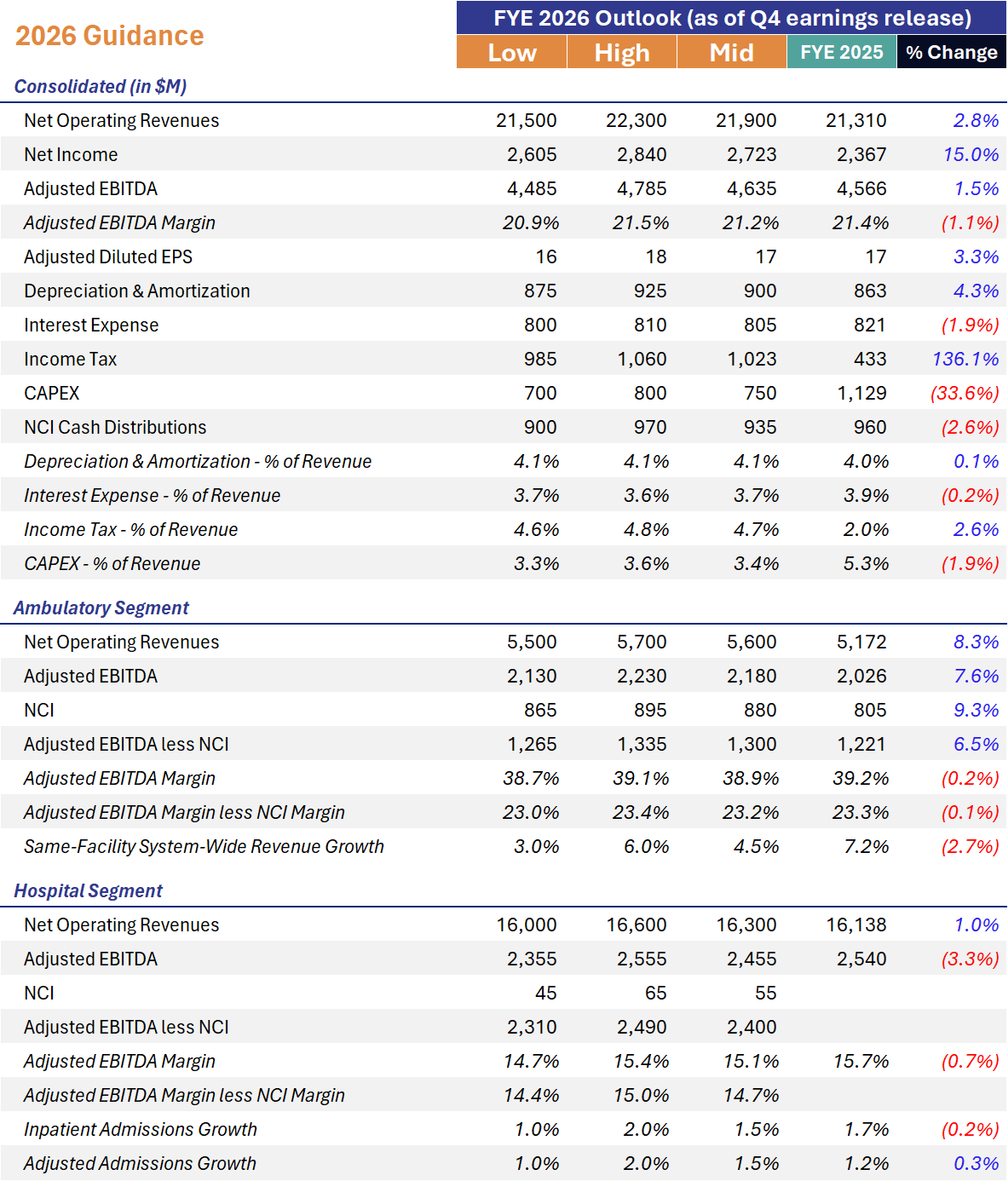 USPI continues to be the best story in ambulatory care. Here's the Q4 and FY 2025 rundown: |