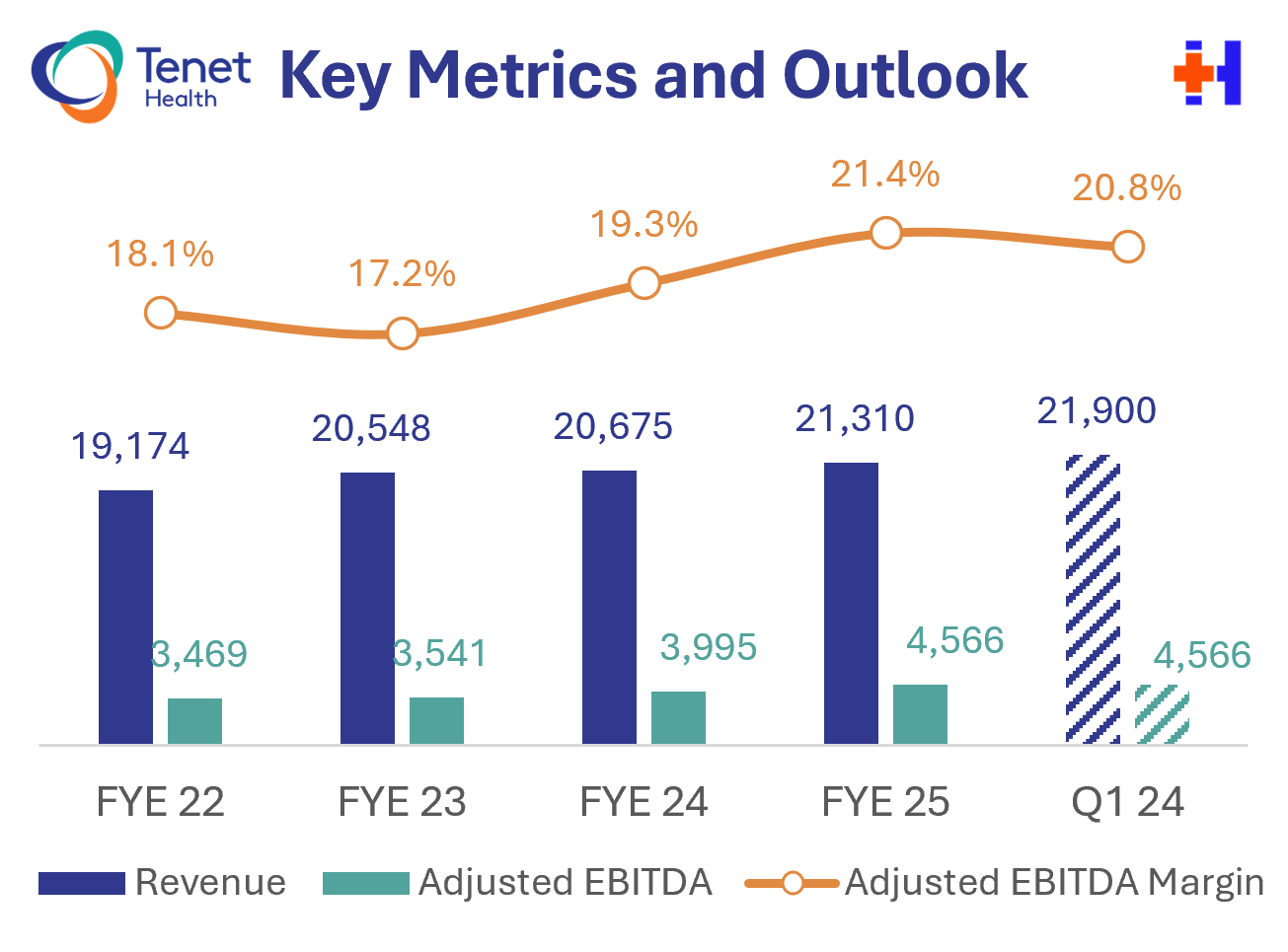 Executive Summary: Conifer Buyback helps bolster balance sheet. Announced in late January, Tenet acquired 23.8% of Conifer equity from CommonSpirit. Full strategic control of Conifer now sits with Tenet. Still, I can't help but remember when Tenet wanted to spin off Conifer not too many years ago…then decided to retain it ~6 months later.