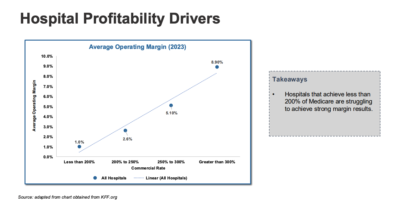 The traditional hospital margin model (lose money on government payors, make it up on commercial) is getting squeezed from both sides. Government is getting bigger, paying less, and adding friction. Commercial is under pressure from price transparency, site neutrality, and employer affordability concerns.
